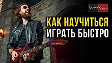 Игра гамм на одной струне и при горизонтальном перемещении по грифу - Ещё одно излюбленное клише Мальмстина. По сравнению со свипами оно не такое уж и сложное, если вы, конечно, можете играть переменным штрихом на скорости 160 ударов в минуту!